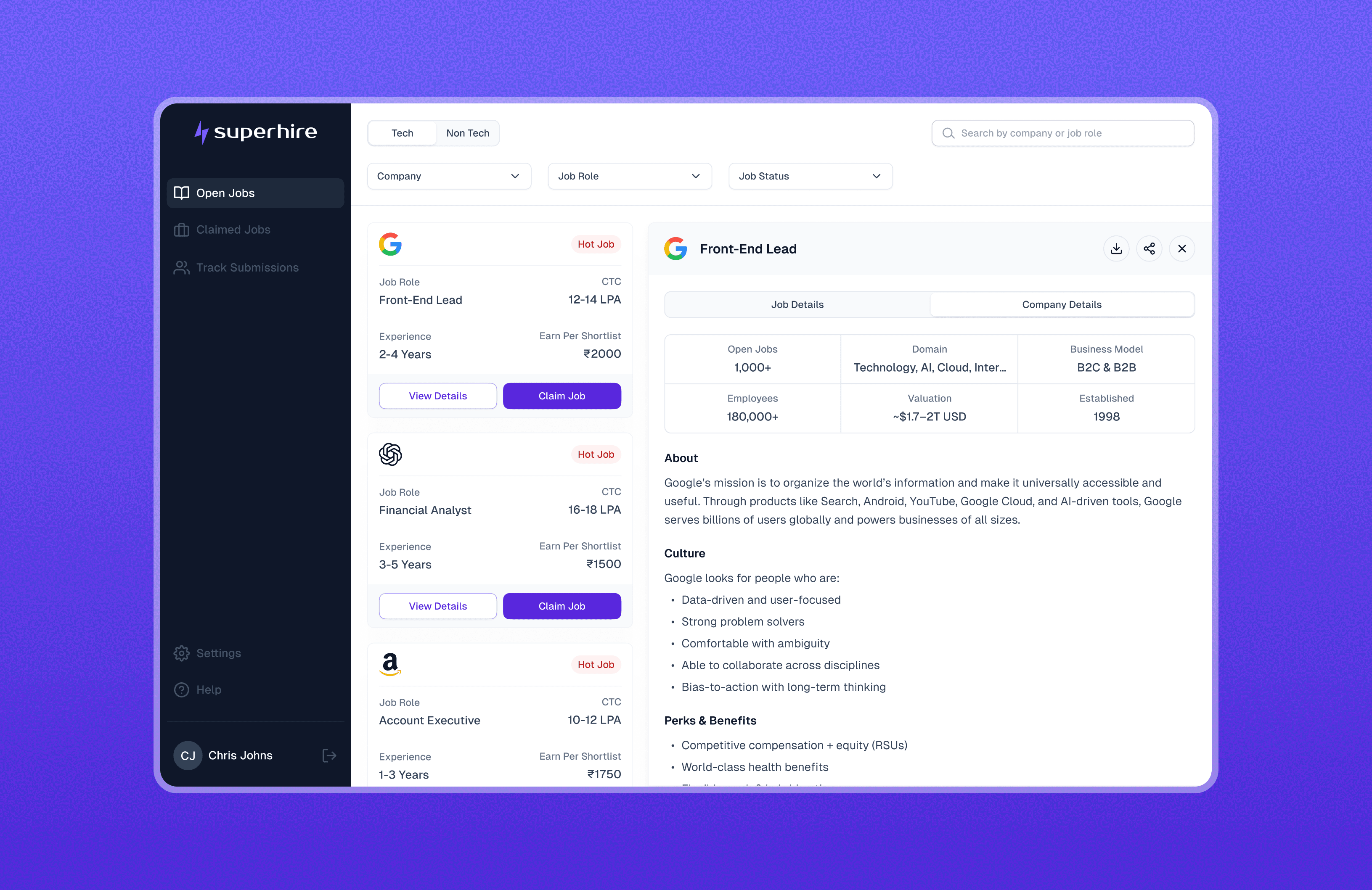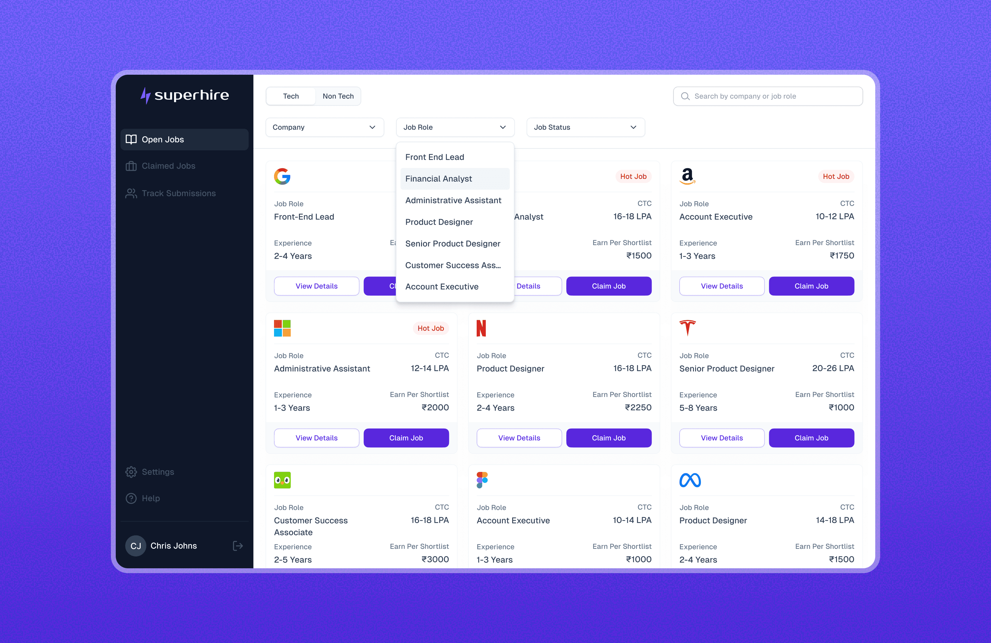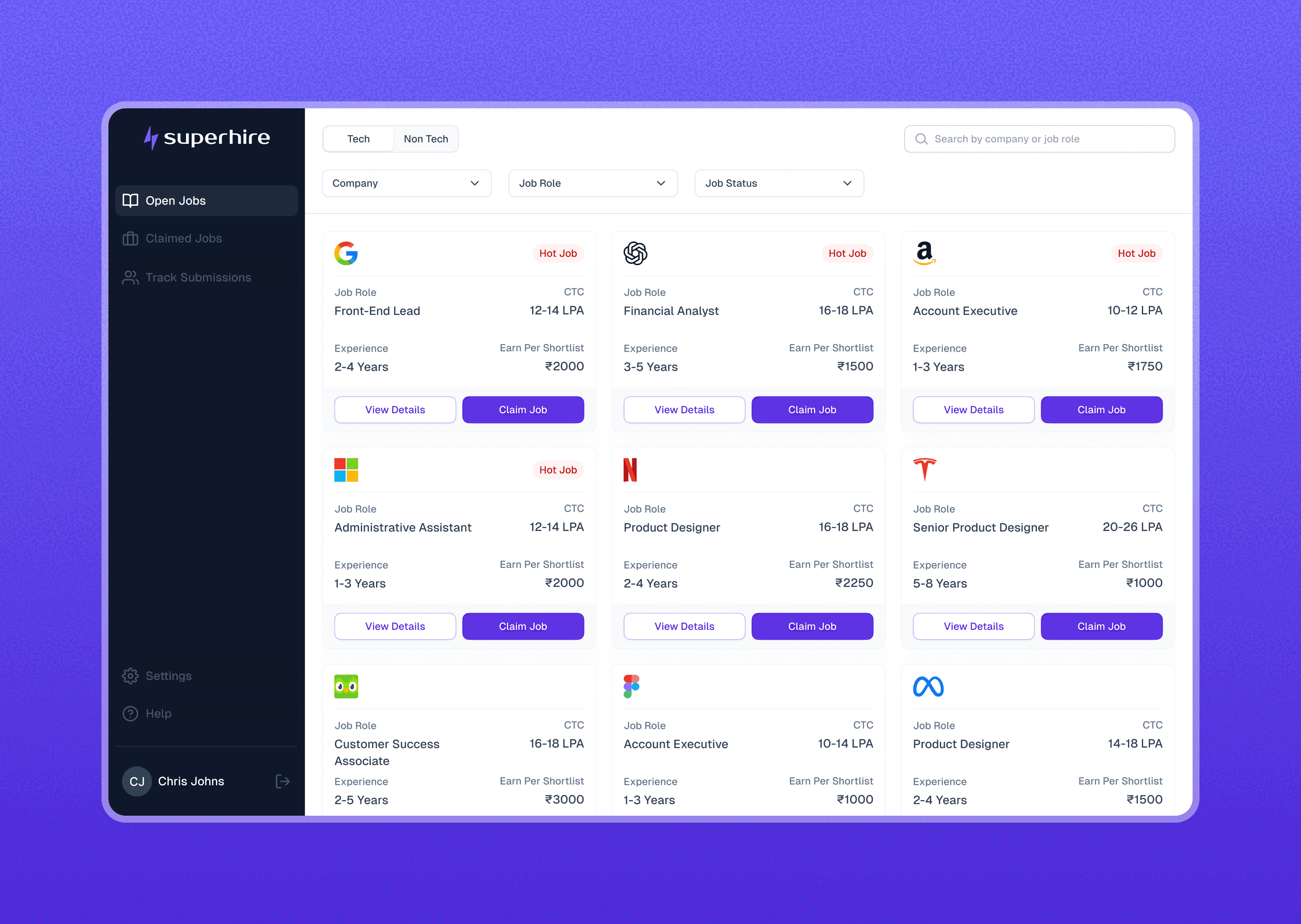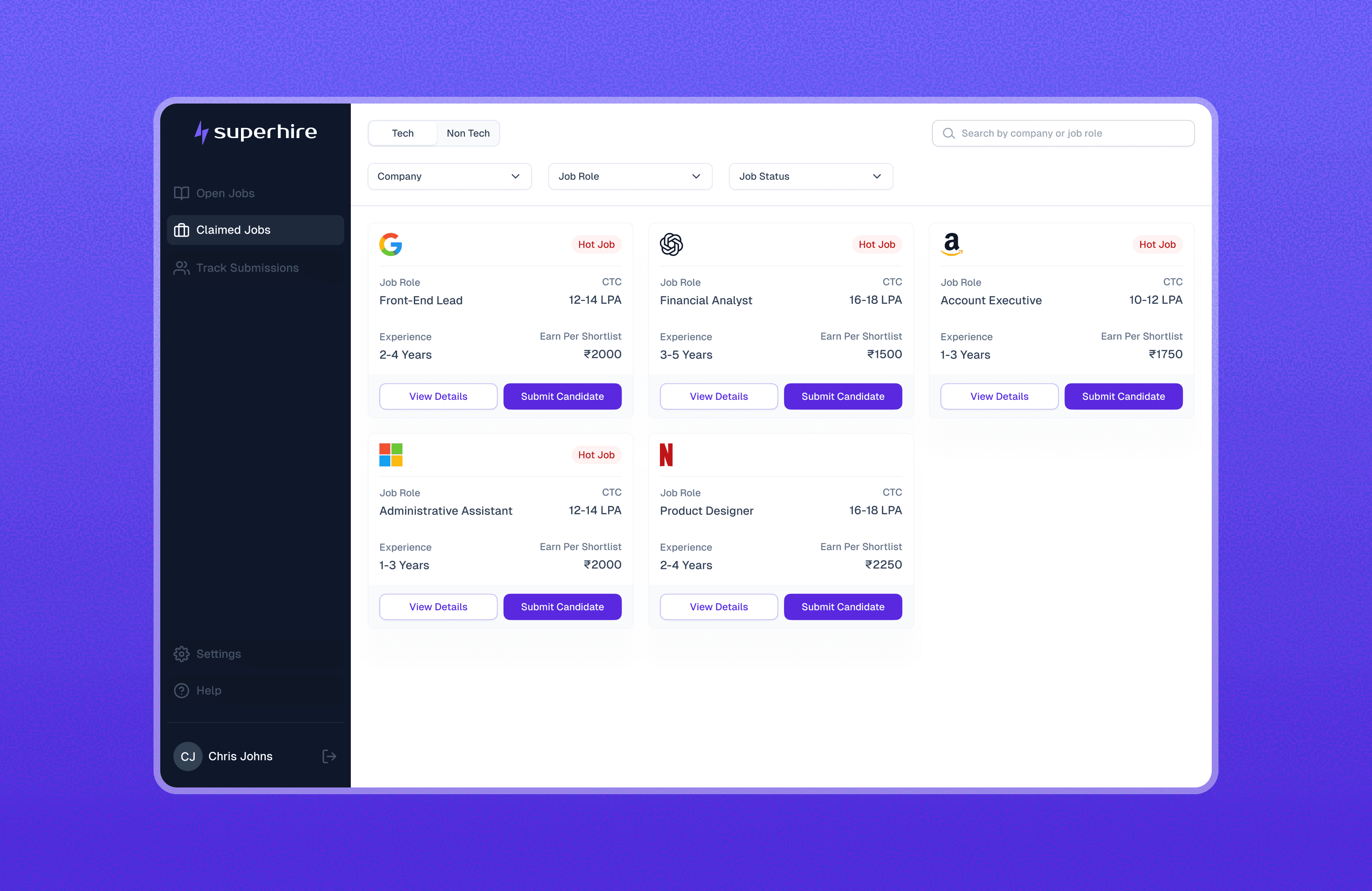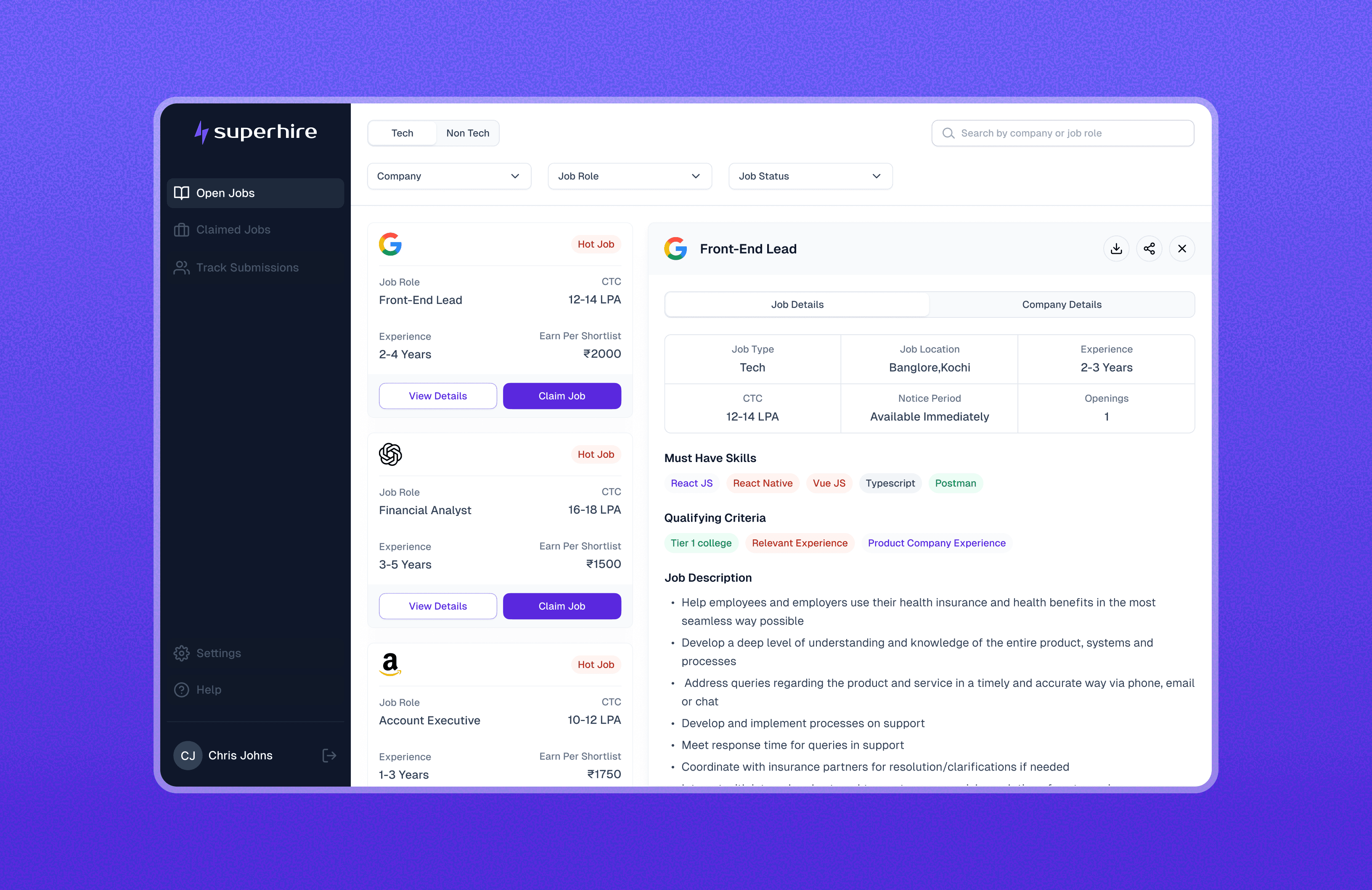 All claimed roles are grouped in one place, helping recruiters stay focused on the jobs they’re actively working on.